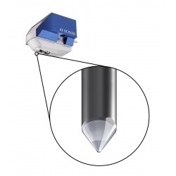El cartucho de doble bobina móvil AT-OC9XEB con aguja adherida elíptica está diseñado para proporcionar una extraordinaria separación de canales. Las bobinas de cobre puro por proceso de función continua Ohno (PCOCC) garantiza una transmisión de audio pura y están alineadas en forma de V invertida para ejercer menos presión sobre la aguja y, por tanto, minimizar la distorsión. La calidad de audio se mejora todavía más mediante un cuerpo de aluminio rígido que reduce la resonancia, un imán de neodimio y un puente de acero puro que aumenta la energía magnética, y la aguja adherida elíptica en un voladizo de aluminio que sigue con precisión el surco del disco. El cuerpo del cartucho ha sido preroscado, lo que permite montarlo en un cabezal o brazo de lectura integrado con tan solo dos tornillos, sin necesidad de tuercas.