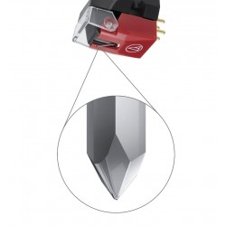 La aguja de diamante de perfil Microlinear ofrece una respuesta en frecuencia amplia con menor rozamiento y distorsión que las agujas elípticas o las convencionales de contacto lineal.