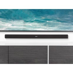 Mejore el audio de su pantalla con el sistema de barra de sonido Denon DHT-S316 de 2.1 canales . La barra de sonido presenta un diseño estéreo con un subwoofer inalámbrico para graves mejorados. Puede conectar su pantalla mediante HDMI ARC u óptico, y un conector de 3,1 mm le permite conectar otras fuentes. La decodificación Dolby Digital y DTS, junto con las tecnologías integradas, proporciona una experiencia de sonido envolvente virtual.