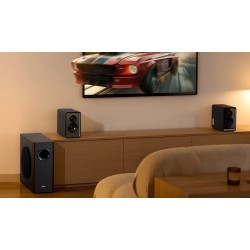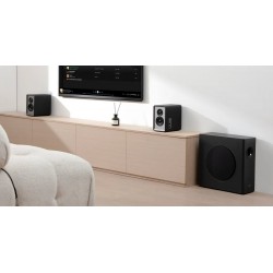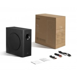 Equipado con un woofer de largo alcance de 8 pulgadas, este subwoofer ofrece graves profundos y envolventes con una respuesta de frecuencia de hasta 35 Hz. Una fuente de alimentación conmutada de alta eficiencia y un amplificador de clase D de bucle cerrado proporcionan una salida de 70 W RMS para un rendimiento potente y consistente.