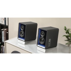 >>Dimensiones (An x Al x Pr): 14.1 cm x 21.3 cm x 21.6 cm (altavoz activo), 13.0 cm x 21.3 cm x 21c2 cm (altavoz pasivo)