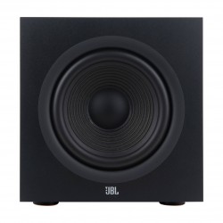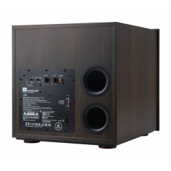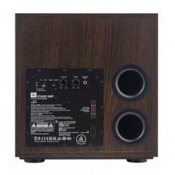 El subwoofer espresso Stage 200P de 10" y 150 W de JBL es compatible con toda la serie Stage y ofrece la emoción de bajas frecuencias que buscan los clientes. Fabricado con un woofer de baja frecuencia de policelulosa de 10" acanalado y alta excursión, cuenta con dos puertos de salida trasera que proporcionan graves profundos y potentes, con 150 W de potencia RMS y 300 W de potencia pico. También incluye un filtro de paso bajo variable de 50 a 150 Hz, una entrada LFE de nivel de línea por RCA, rejillas magnéticas y soportes metálicos ajustables para alfombras gruesas o alfombras de felpa.