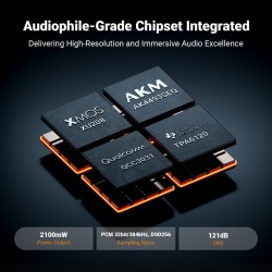 El K7 utiliza un chipset de grado audiófilo, destacando el DAC AKM4493SEQ y el procesador XMOS XU208, y potentes chips de amplificación TPA6120 para impulsar auriculares demandantes. Además de su rendimiento de audio superior, incorpora una entrada de micrófono, lo que lo convierte en una excelente opción para gamers que requieren comunicación de voz clara sin sacrificar la calidad del sonido.
