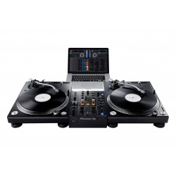 La DJM-450 es compatible con rekordbox, así que podrás mezclar con pistas almacenadas en tu PC o Mac cuando uses tornamesas y nuestro vinilo de control (disponible por separado)