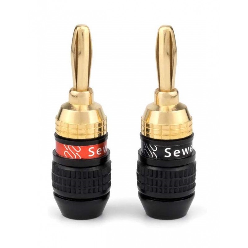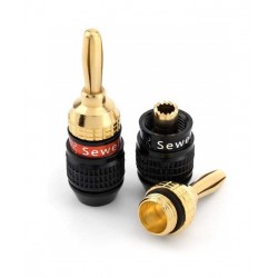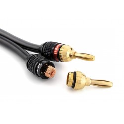 Los enchufes tipo banana ofrecen una alternativa a insertar un cable de altavoz desnudo en el equipo. A menudo, una conexión de altavoz desnudo no es tan confiable como una conexión de conector tipo banana garantizada. Los cables tienden a arrancarse o encresparse con el paso del tiempo. Los enchufes banana solo requieren una instalación, lo que le brinda un conector permanente y robusto al final del cable de su altavoz.