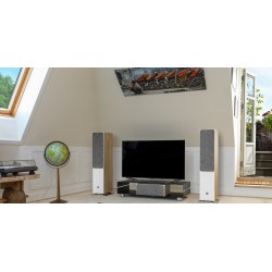 Los bordes redondeados y el tejido rústico de estas nuevas rejillas frontales DALI añaden un aspecto visual más ligero y contemporáneo a la serie OBERON. Este aspecto se ve reforzado por la base de aluminio de elegante forma montada en los dos modelos de pie.