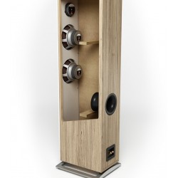 Este gran altavoz de suelo, OBERON 7, cuenta con dos woofers de fibra de madera y una cúpula de tweeter sobredimensionada de 29mm.