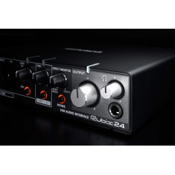 En su panel frontal, Rubix44 cuenta con perillas de acceso rápido para ajustar el volumen general y el nivel de los auriculares, además de controles de monitor directo dedicados para un monitoreo sin latencia sin tener que preocuparse por un mezclador basado en computadora. Los controladores de Mac y Windows ofrecen un rendimiento fluido y confiable, y la membresía Roland Cloud Pro incluida proporciona una plataforma creativa completa que funciona desde el primer momento. Rubix44 incluso es compatible con iPad, lo que le brinda un sistema potente y compacto para grabación en el lugar, producción móvil y presentaciones.