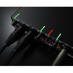 Al grabar, lograr los niveles de señal adecuados es fundamental. Pero los estudios y los escenarios pueden ser lugares oscuros y no es necesario lidiar con indicadores de nivel y clip que son pequeños y difíciles de ver. Diseñado pensando en los artistas de grabación, Rubix44 presenta indicadores brillantes que muestran claramente si un canal tiene señal entrante o se va a sobrecargar. Mejor aún, se pueden ver tanto desde la parte frontal como desde la parte superior de la unidad, lo que le permite monitorear fácilmente el estado de la señal desde casi cualquier lugar en el que se encuentre.
