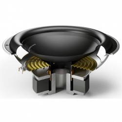 La bobina móvil de 4 capas y 30 mm de longitud está diseñada para largas excursions. Está ventilada para asegurar el enfriamiento del aire hacia el sistema y hacia la propia bobina, manteniendo la temperatura baja la cual creará una respuesta estable de bajos.