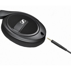 Los auriculares HD 569, que destacan por su versatilidad, vienen con dos cables desmontables. Uno es un cable de 9.8 'con enchufe recto de 1/4 "para uso doméstico. El otro es un cable de 3.9' con un enchufe recto de 1/8" y un control remoto de 1 botón más micrófono, que le permite administrar llamadas