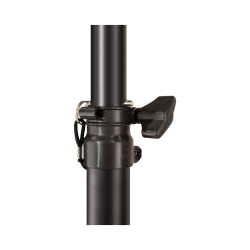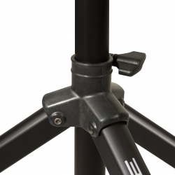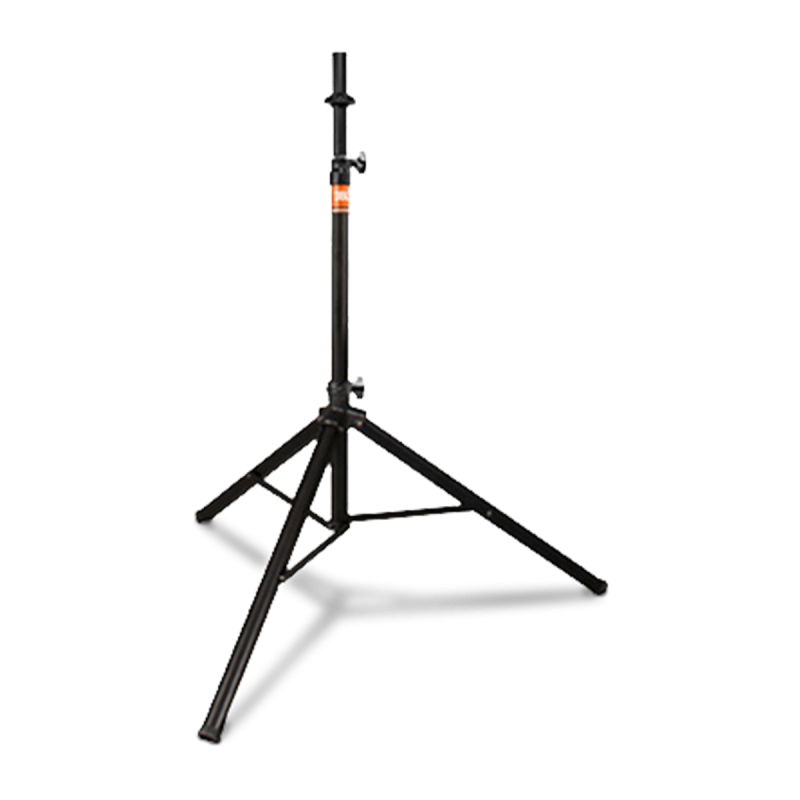 Soporte de altavoz de aluminio con trípode con pasador de bloqueo seguro y capacidad de carga de 68 kg. Para ayudarlo a levantar su altavoz, hemos agregado un anillo de elevación duradero en el tubo telescópico para darle a su mano superior algo contra lo que empujar al levantar el altavoz a la altura deseada.