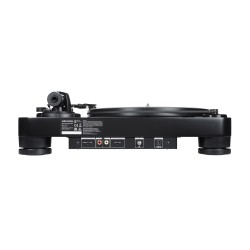 El chasis del tocadiscos está fabricado de fibra de densidad media (DM) de 40 mm de grosor, un excelente material de amortiguación antivibraciones que reduce la retroalimentación acústica de frecuencias bajas. El plato antiresonancia está fabricado de polioximetileno de 20 mm de grosor y se acciona mediante un motor controlado por sensor que garantiza una velocidad de rotación precisa de 33-1/3 o 45 rpm. También incluye un preamplificador conmutable (fono/línea) integrado, que permite conectarlo a componentes con o sin entrada fonográfica (phono) dedicada y un selector para utilizarlo con un cartucho de imán móvil o de bobina móvil.