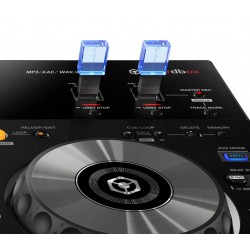 Puedes ver lo que pasa en ambos reproductores a través de la pantalla en color de 7 pulgadas. Mira el estado de reproducción, BPM, forma de onda y demás información de vital importancia para llevar a cabo sets creativos y fluidos.