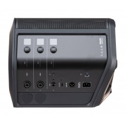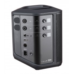 El mezclador de 3 canales con reverberación y todas las funciones ofrece dos entradas combinadas XLR-1/4", una entrada auxiliar de 1/4", una entrada estéreo de 3,5 mm y Bluetooth para transmitir audio desde una distancia de hasta 30 pies. El procesamiento ToneMatch integrado está diseñado para mejorar las voces y los instrumentos. El S1 Pro+ tiene sensores integrados que detectan múltiples posiciones de orientación, lo que permite un sonido óptimo en casi cualquier posición, incluso sobre una mesa, en el suelo, montado en un soporte de altavoz estándar de 35 mm o utilizado como monitor de cuña. La batería de iones de litio integrada le permite encender y reproducir su sistema Bose S1 Pro+ durante hasta 11 horas a niveles de volumen moderados y hasta 5 horas a volumen máximo para presentaciones en vivo.