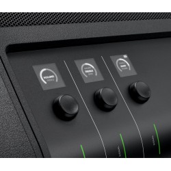 Recorra el volumen, los agudos y los graves de cada canal y acceda a los ajustes preestablecidos de ToneMatch y a la configuración de reverberación para los canales 1 y 2. Cambie las posiciones y las pantallas OLED girarán automáticamente.