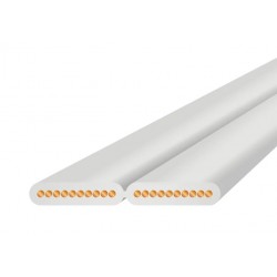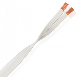 El cable plano para altavoz de alta gama Horizon™ de Wireworld proporciona un alto valor y facilidad de ocultación. Con conductores OFC flexibles planos de calibre 16 con aislamiento blanco flexible, este cable de altavoz plano es tan delgado como una moneda de diez centavos (1,4 mm) y solo 3/8” (10 mm) de ancho, lo que lo hace ideal para ocultarlo debajo de molduras y alfombras.
