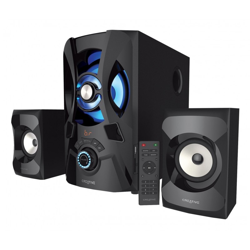 El sistema de altavoces más potente en la serie Creative SBS E2000, este completo sistema de altavoces 2.1 está diseñado para cautivarle con su increíble rendimiento de audio, además de ofrecerle un amplio espectro de opciones de conectividad (con cable, inalámbricas y otras formas).