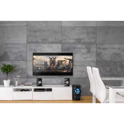 * Potente sistema de altavoces 2.1 con drivers de campo lejano: Potente sistema de altavoces 2.1 Bluetooth que ofrece un rendimiento de audio alto e impresionante con 60W de RMS y hasta 120W de pico máximo de potencia. Los altavoces llevan nuestros drivers de campo lejano que producen un audio que llena el espacio proporcionando una experiencia de audio envolvente.