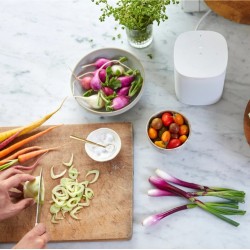 Compacto como para ponerlo en la cocina y bello como para una repisa o librero, este parlante cabe y se ve increíble donde sea que quieras escuchar.