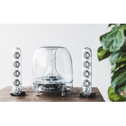 Con su característico diseño transparente, el sistema de altavoces inalámbricos SoundSticks 4 está diseñado para integrarse en casi cualquier entorno.