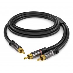 Transmita audio con una calidad de señal brillante con este cable RCA/phono (macho a macho, 2 a 1).