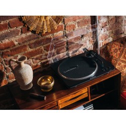 Disponible en tres elegantes colores, negro/gris, negro/bronce o blanco/plateado, para personalizar el giradiscos según sus preferencias de estilo.