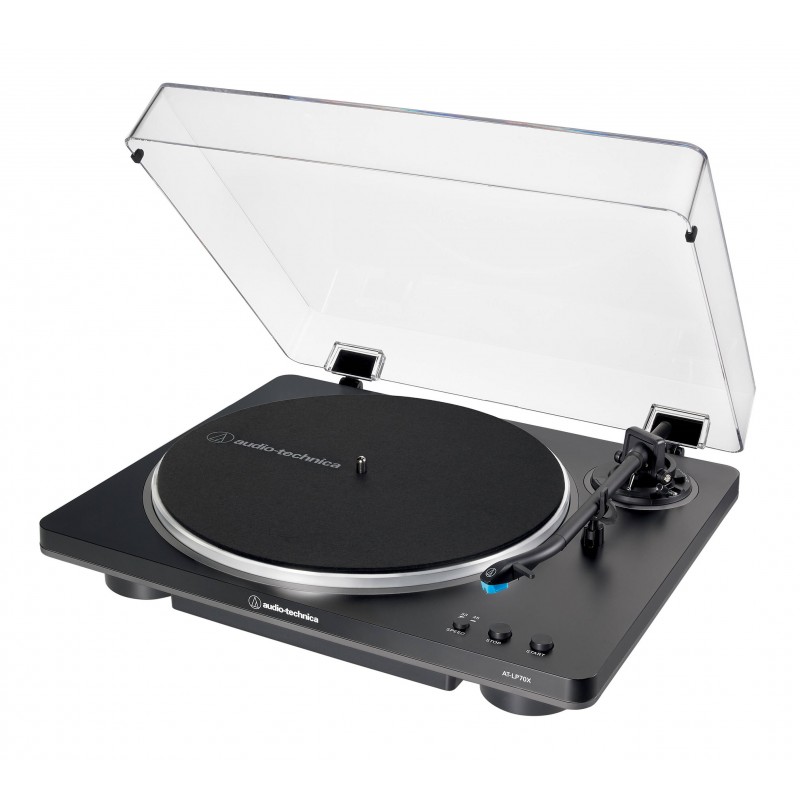 El giradiscos de transmisión por correa totalmente automático AT-LP70X es el giradiscos perfecto para quienes se inician en el mundo audiófilo. Diseñado para ofrecer una experiencia de sonido de calidad para aquellos que aman escuchar discos, desde hojear álbumes en la tienda hasta colocar un disco en el giradiscos, activar el brazo y sentarse con la tapa del álbum en la mano para disfrutar de la música tal y como la concibió el artista. Combinando la experiencia de un sonido cálido y analógico con funciones fáciles de usar, este giradiscos reproduce discos de 33-1/3 y 45 RPM e incorpora un preamplificador fonográfico conmutable que permite conectar el giradiscos a un equipo estéreo doméstico, a parlantes autoamplificados o a otro componente, con o sin una entrada de fono dedicada.