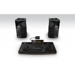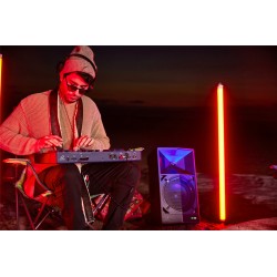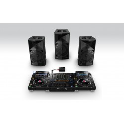 Saca el transmisor incluido de su compartimento de almacenamiento en el WAVE-EIGHT y conéctalo a tu equipo DJ, y podrás crear instantáneamente una conexión inalámbrica, lo que te permitirá organizar una fiesta DJ en cualquier lugar que desees. Y si combinas el WAVE-EIGHT con el nuevo sistema DJ portátil Todo en Uno OMNIS-DUO, que funciona con batería, podrás tocar sin cables para disfrutar de total libertad.»