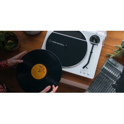 Equipado con tecnología inalámbrica Bluetooth para una conexión sencilla a altavoces y auriculares, el AT-LP70XBT reproduce discos de 33⅓ y 45 RPM automáticamente con sólo pulsar un botón. Y como el brazo en forma de J incorpora una cápsula AT-VM95C integrada, no es necesario instalar, equilibrar ni configurar el brazo.