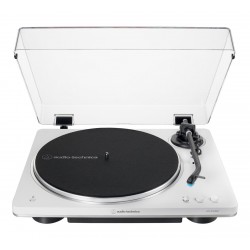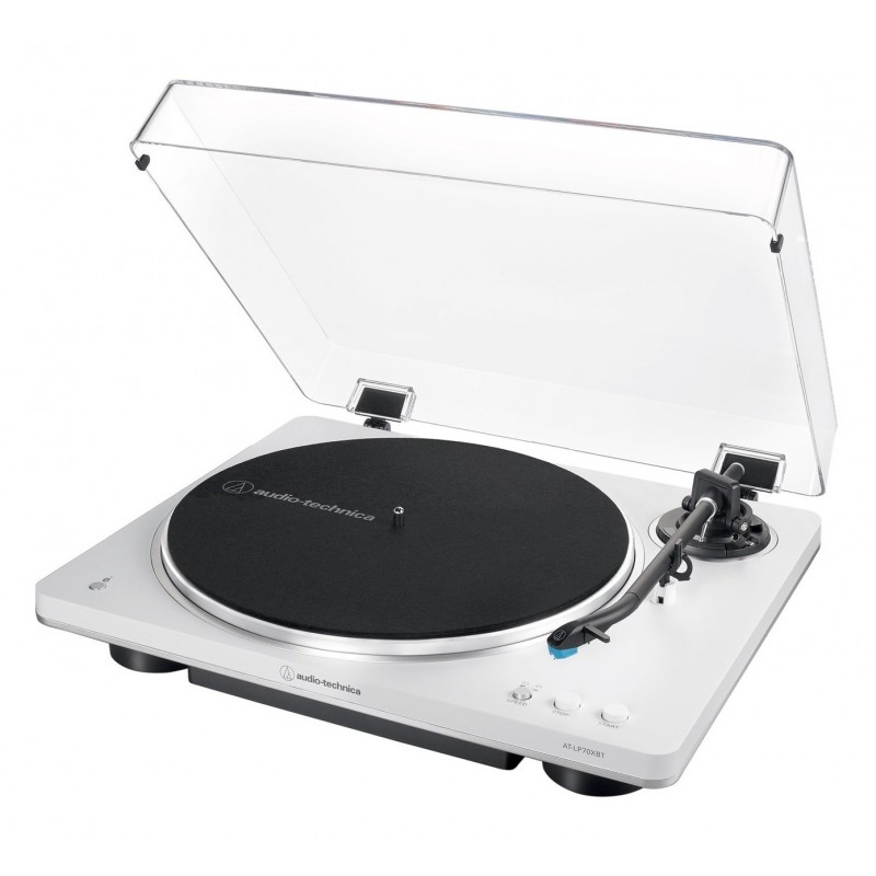 Audio-Technica AT-LP70XBT-WS Tornamesa de transmisión por correa totalmente automático, inalámbrico con Bluetooth (Blanco/Plata)
