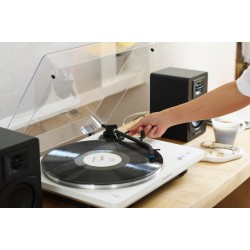 El AT-LP70XBT se puede conectar a los parlantes de estantería autoamplificados AT-SP3X de Audio-Technica mediante la tecnología inalámbrica Bluetooth o el cable RCA incluido para obtener un sistema de sonido fácil de gestionar que se adapta a cualquier habitación y no requiere amplificador externo.