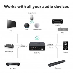 WiiM Pro convierte tu equipo estéreo en un receptor compatible con AirPlay 2. Transmite tu música favorita desde tus dispositivos iOS y Mac o transmite audio de TV desde Apple TV. Utiliza Siri en tu teléfono o HomePod para controlar la selección de música, el volumen y la reproducción. WiiM Pro es una forma fácil y asequible de conectar tus dispositivos Apple a tu equipo de audio favorito en casa. NOTA: Es un dispositivo SOLO RECEPTOR, no puede TRANSMITIR AirPlay 2.
