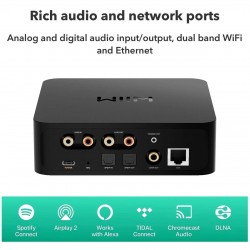 WiiM Pro convierte su sistema estéreo existente en inteligente, para que pueda reproducir toda su música favorita desde la aplicación de su servicio de música, la aplicación WiiM, o su voz usando Alexa, Google Voice o Siri, todo con la mayor fidelidad de sonido posible. NOTA: Es un dispositivo SOLO RECEPTOR, no puede TRANSMITIR AirPlay 2.